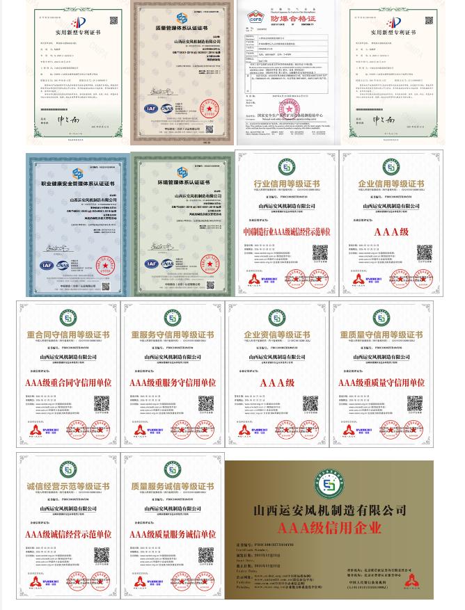 山西运安风机制造有限公司是研发和生产制造轴流风机的专业厂家,产品适用于煤炭、隧道、冶金矿山等领域,是一家有着深厚底蕴和十多年丰富经验的高新技术型企业。公司主要生产矿用防爆轴流式FBCZ系列主通风机、FBCDZ系列对旋主通风机、FB系列压入式局部通风机、FBD系列压入式对旋局部通风机、FBD系列多级对旋通风机、FBC系列抽出式局部通风机、FBCD系列抽出式对旋局部通风机、SDF系列隧道风机和SDS系列射流风机等等,型号规格齐全,能满足各种矿井、隧道的通风需求。