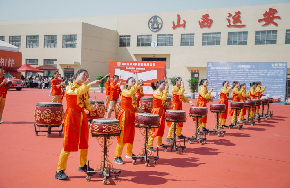 早上整八点,喜气洋洋的“绛州锣鼓”队在广场上拉开了庆典的开幕式。气势雄浑的鼓声响彻云霄,精彩壮观的表演象征着运安风机事业的蒸蒸日上。