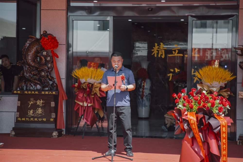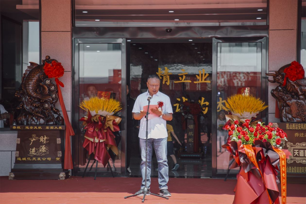 “彩旗飞锦、礼炮齐鸣!”一片赞叹和祝福声中,运安风机董事长仝鸿江上台致辞。