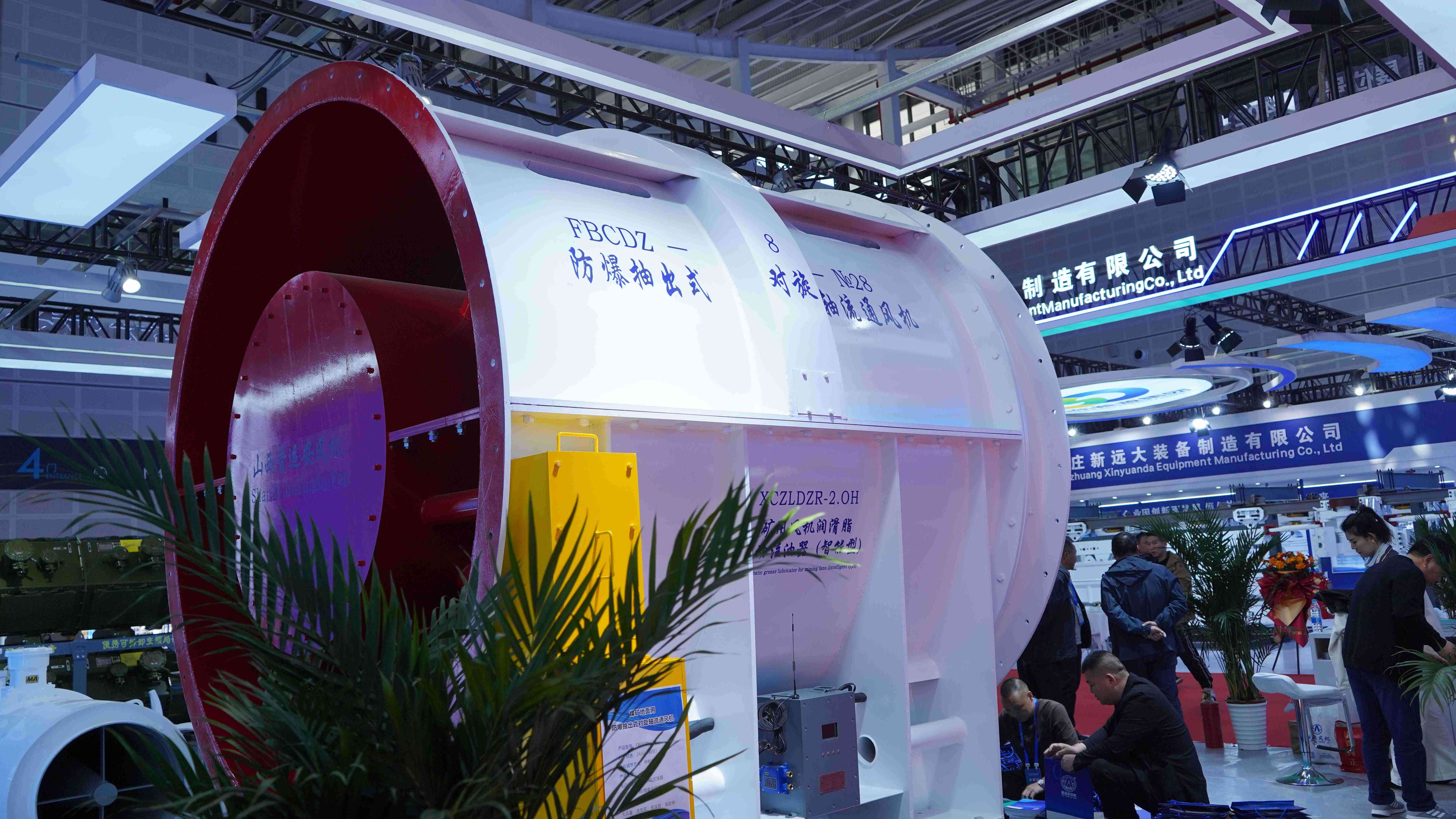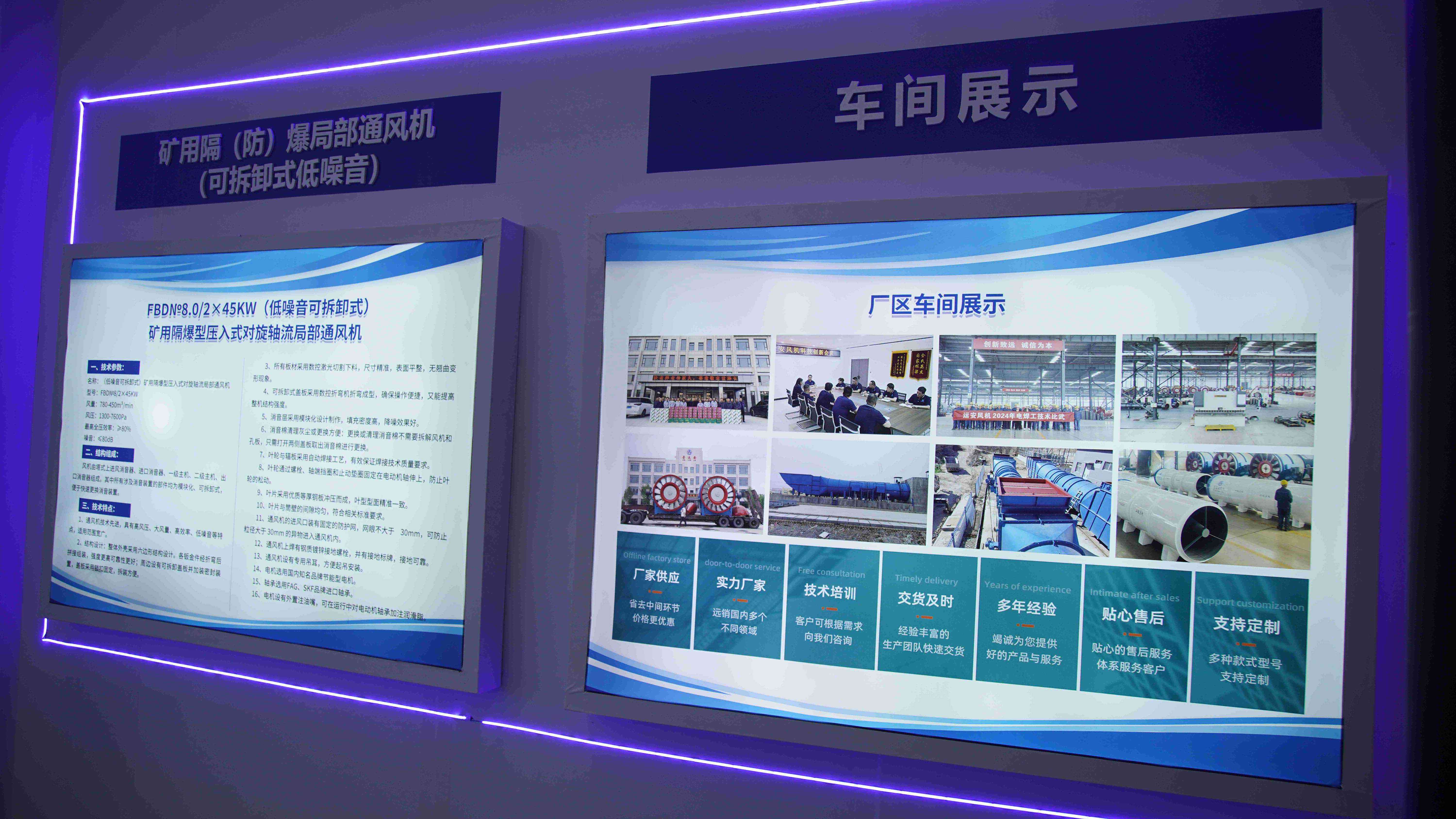 智能通风,精准守护矿井安全——展区C位的煤矿地面用防爆轴流式主扇通风机,搭载高端智能控制系统,融合实时监测、远程调控与故障自诊断功能,动态调节风量,能耗降低的同时提升20%通风效率,满足千米深井复杂环境的通风游刃有余。根据用户提供的参数优化选型,进行个性化设计,通风机的性能与矿井阻力特性相匹配,叶片效率高、噪声低,反风量大于设计风量的60%,在矿井不同时期均能在高效区运行,并远离喘振区,各项性能指标均可达到目前同类产品的先进水平。