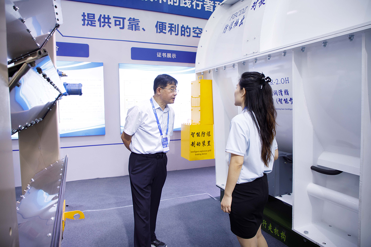一旁的技术员手持平板,演示煤矿主通风机“不停风倒机系统”:主备风机切换时,风量波动时间从传统10分钟缩短至40秒,井下“零停风”成为现实!现场观众屏息凝视,掌声雷动。