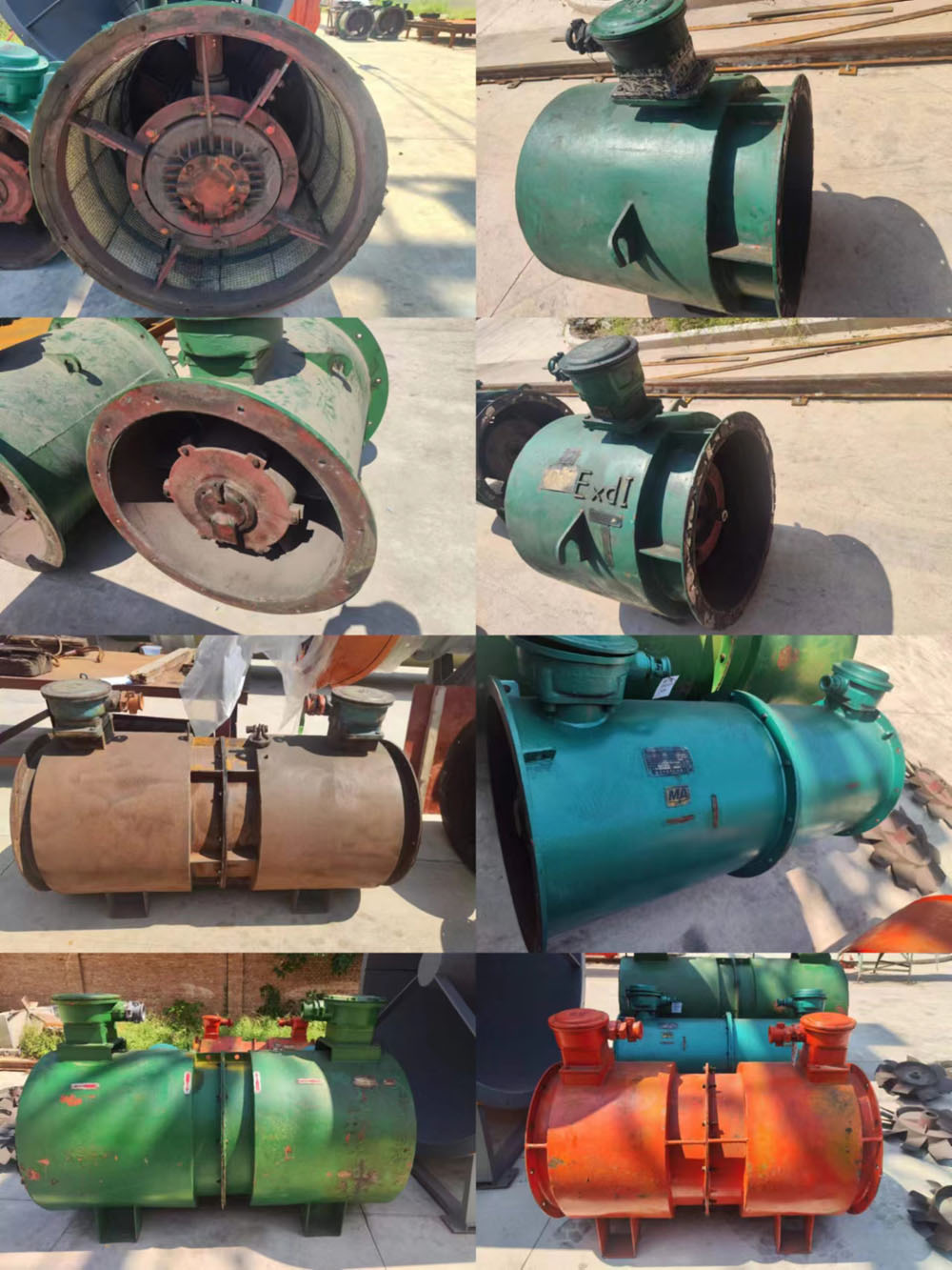 7、通风机叶轮采用优质碳素钢Q235材质,机壳选用不小于3mm的优质碳素钢制作而成,并进行了加强处理,保证机壳不会因碰撞而变形。机壳上设置有起吊用的吊耳和风筒固定装置,方便风机的搬运及固定。