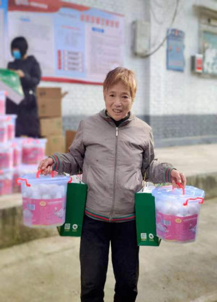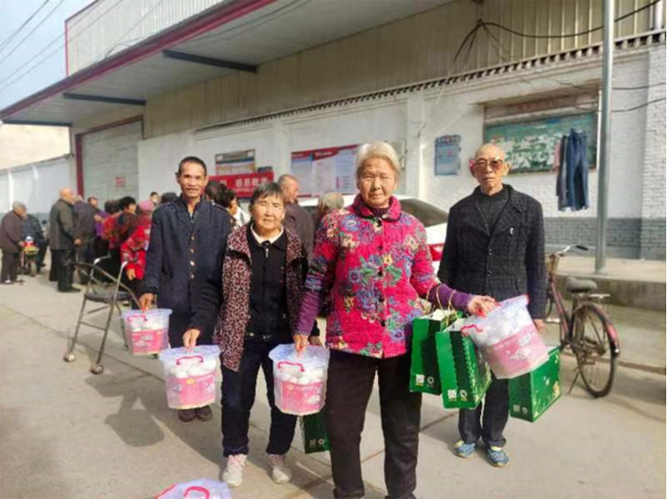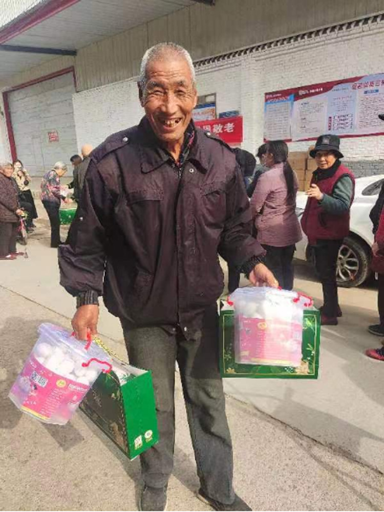 当长者们接过重阳礼物各个笑逐颜开,连声表示感谢,并为董事长竖起了大拇指。