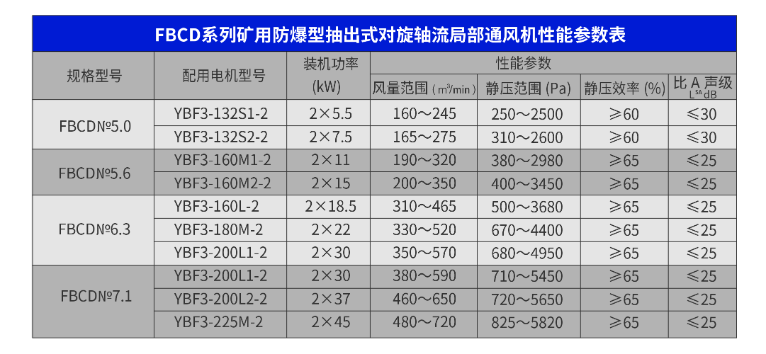 通风型号及含义如下:矿用防爆型抽出式对旋轴流局部通风机