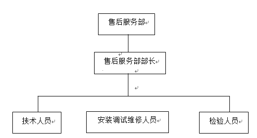 我公司售后服务部有工程师3名,维修技术人员5名,售后质检人员2名,其组织机构如下: