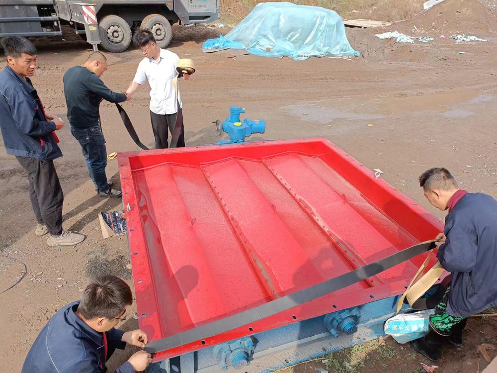 不停风倒机执行系统主要由多个功能风门和执行动力单元组成,又称:对空短路风门和立式挂网调节风门,均安装在矿井引风巷道中,为了方便检修,在立式调节风门前靠近风井的一侧还可加上一道常开备用风门(可根据实际情况加设)。