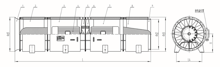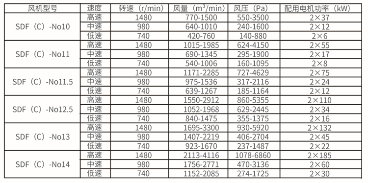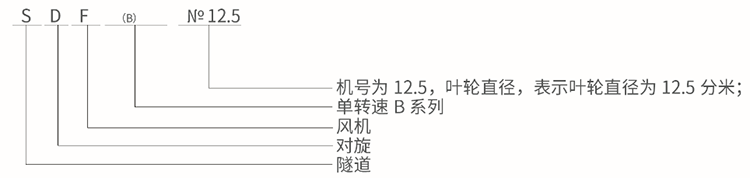 通风型号及含义如下:SDF(B)型隧道施工专用对旋轴流通风机